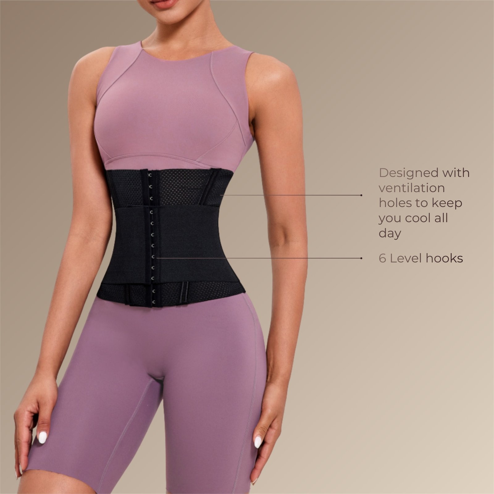 Aerisculpt Waist Trainer is designed for maximum shaping results with a double belt compression system that offers a stronger and more precise fit around the waist. Made with Air Holes Aerisculpt material featuring ventilation holes across the entire surface — making it more breathable, comfortable for all-day wear, and non-restrictive during activities or workouts.