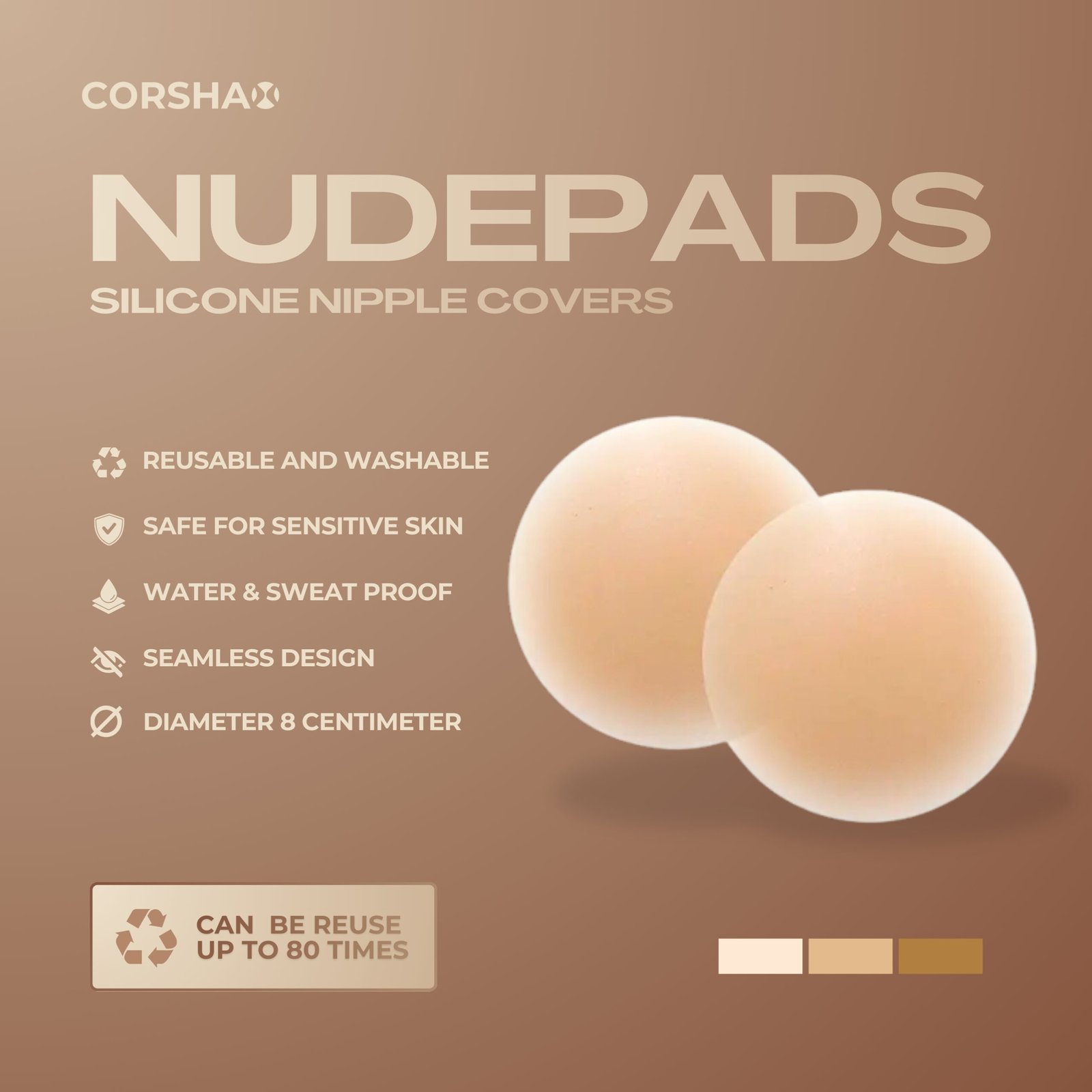 Designed with a soft silicone base and ultra-tacky adhesive, these nipple pads stay securely in place while providing a smooth, seamless look—even under thin T-shirts, backless dresses, or sheer kebaya fabrics.