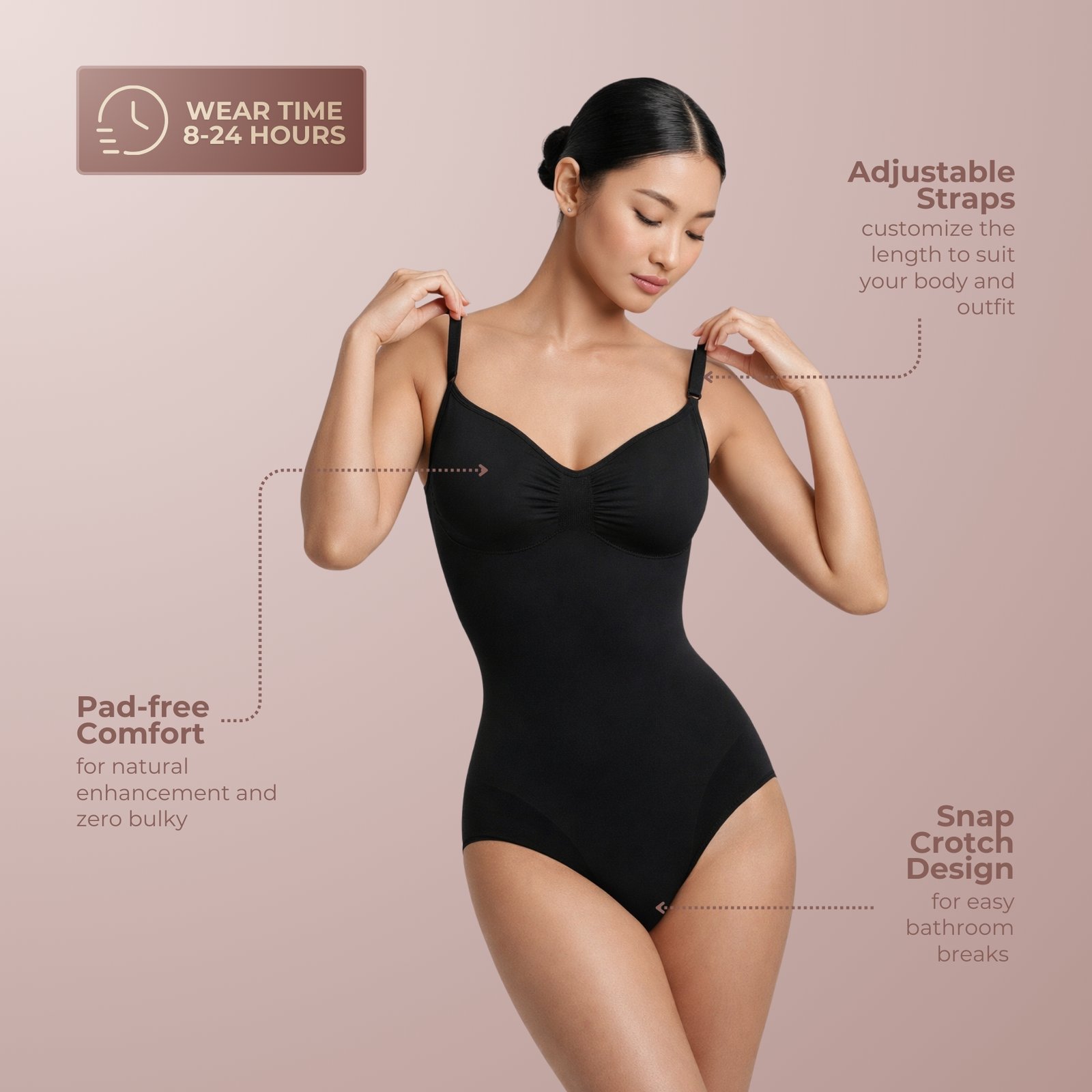 This figure-enhancing bodysuit features targeted compression at the core and waist, helping to smooth and define your midsection. The strategically placed style lines accentuate your curves while rounded butt-lifting pockets give your booty a natural, lifted look.